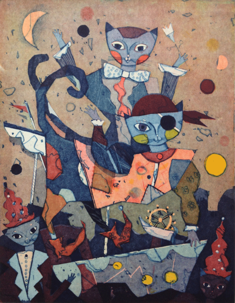 Fünf Farbradierungen, Bildformat je 41 cm x 32,5 cm - Papier 54 cm x 43 cm