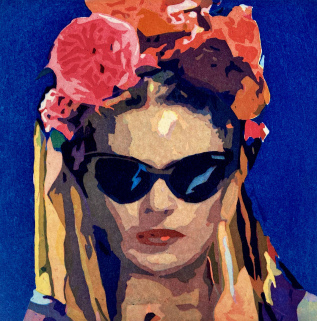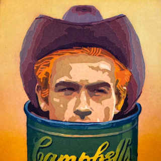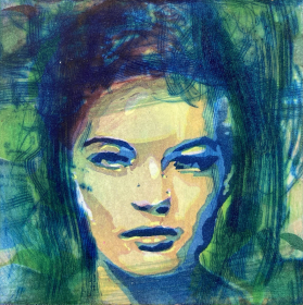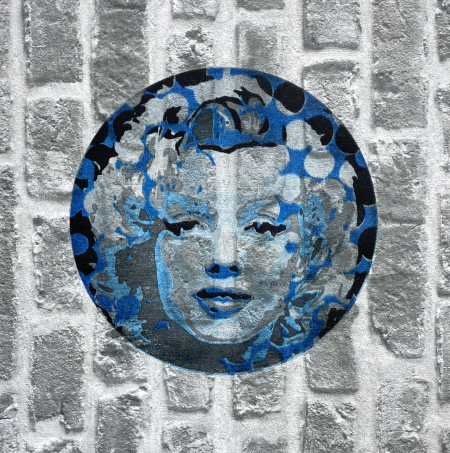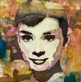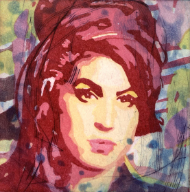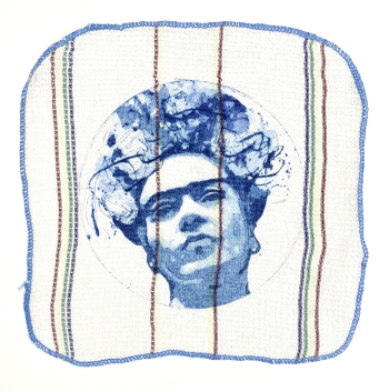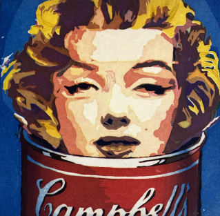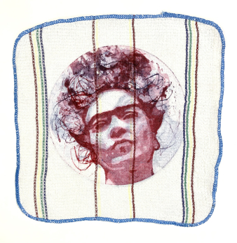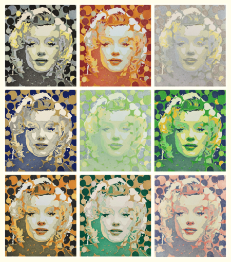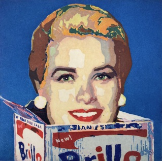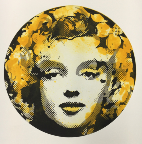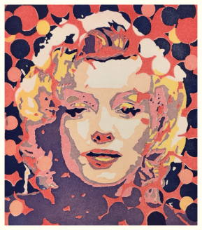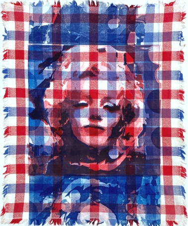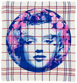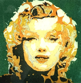 Marilyn Strip, Farbradierung 30 cm x 30 cm auf Geschirrtuch 60 cm x 60 cm