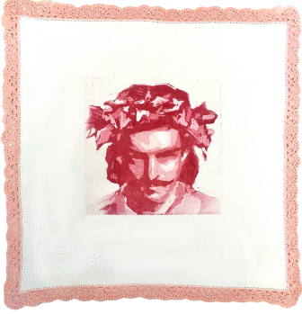 Marilyn Strip, Farbradierung 30 cm x 30 cm auf Deckchen ca. 50 cm x 40 cm
