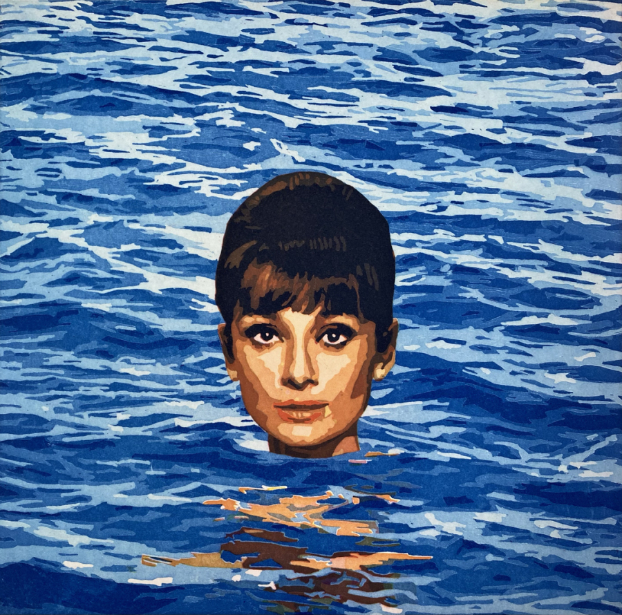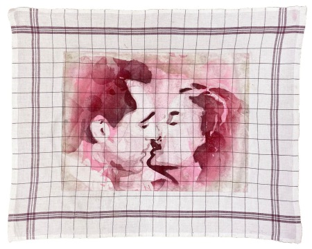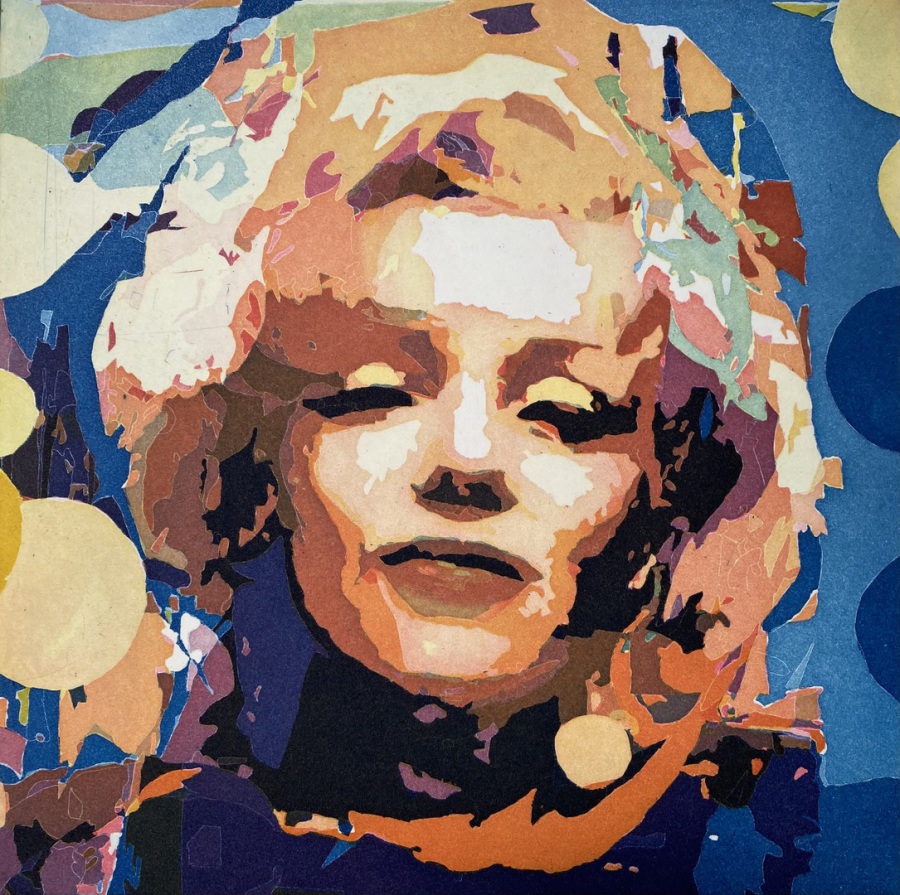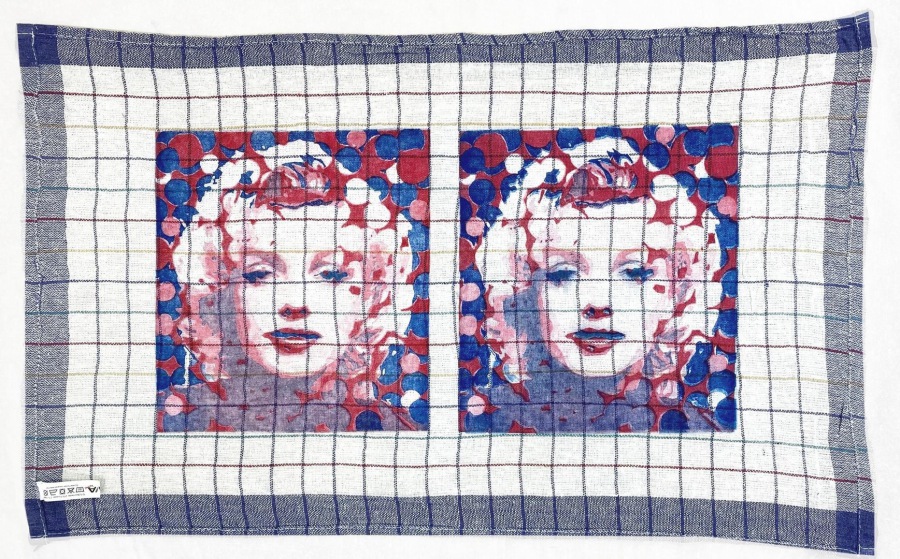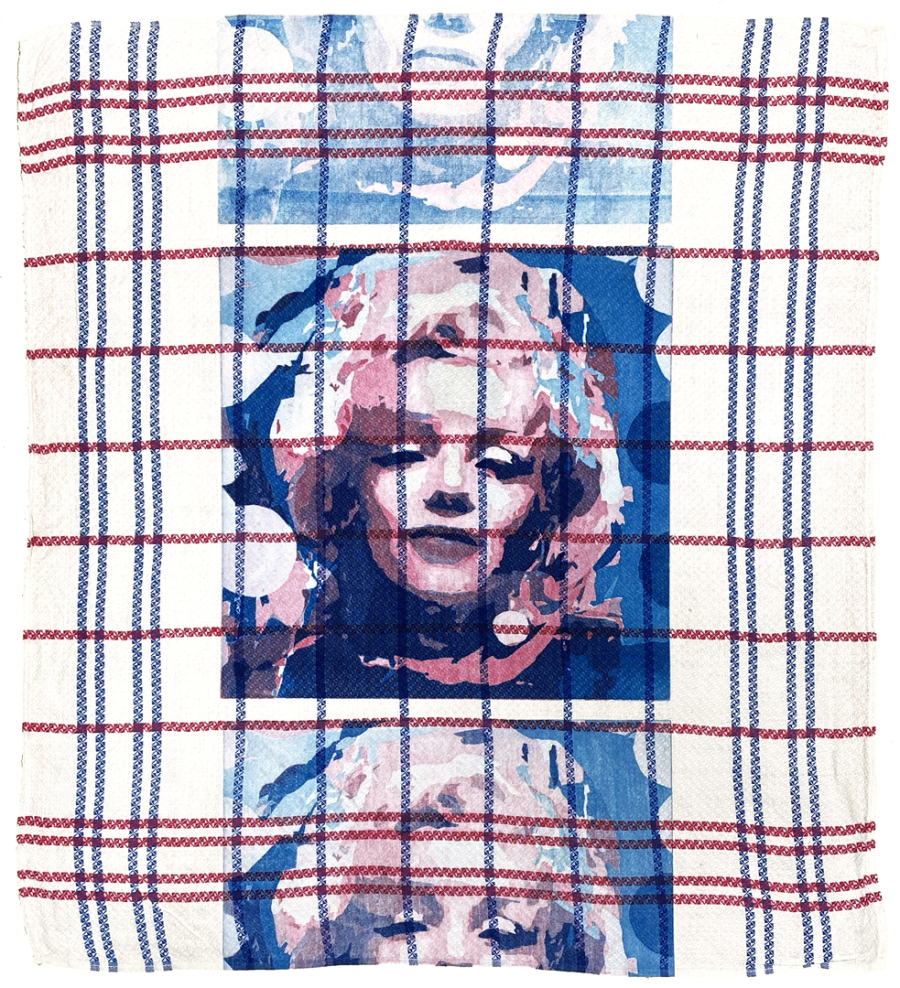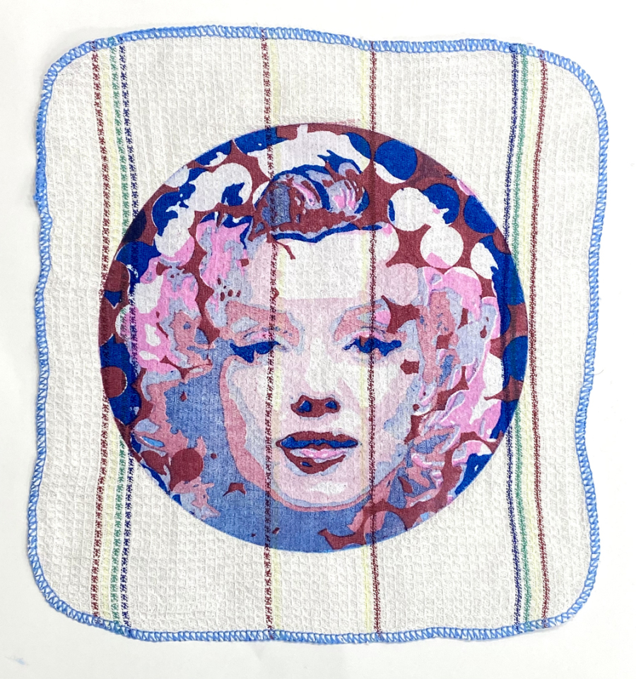 Marilyn Strip, Farbradierung 30 cm x 30 cm auf Geschirrtuch 60 cm x 60 cm